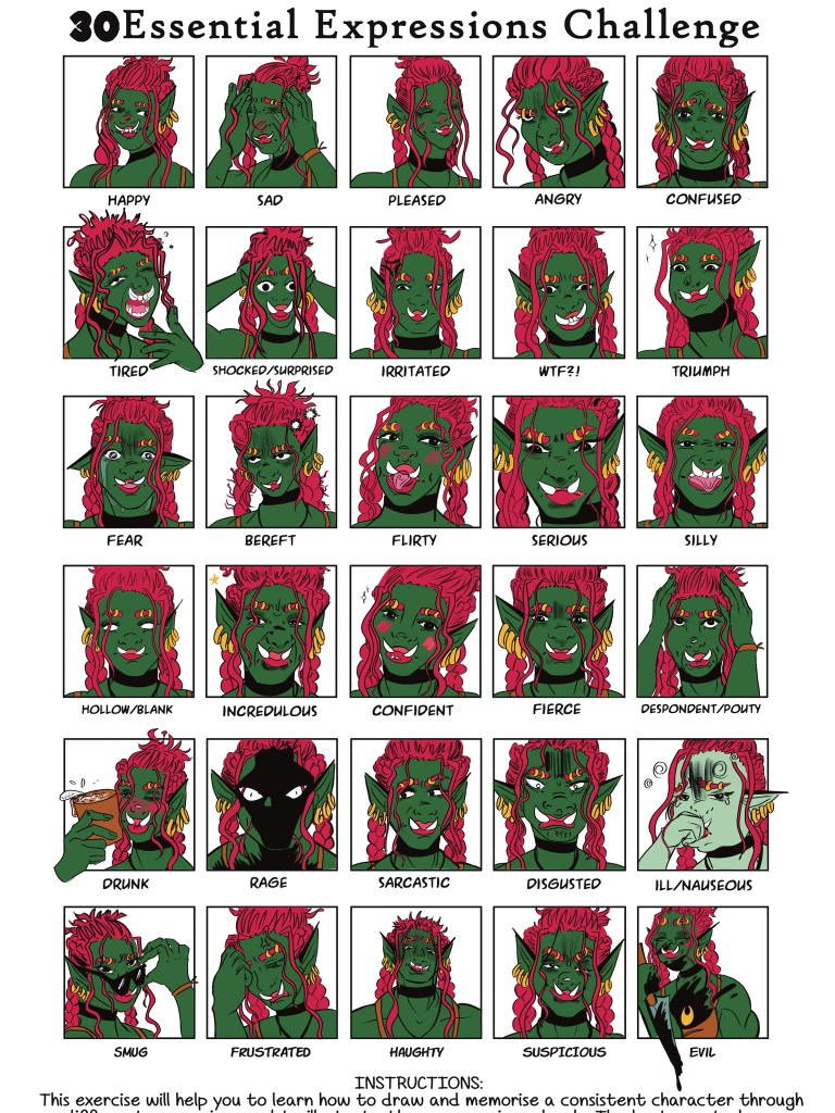 This is an expression sheet dedicated and solely focusing on my OC Zeyga Zephyr’s range of emotions.